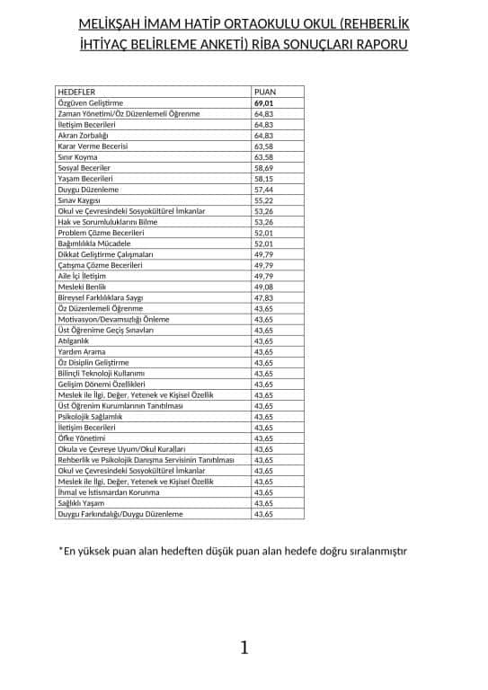 Öğretmen, Veli, Öğrenci Rehberlik İhtiyaç Belirleme Anketleri (RİBA) Sonuçları